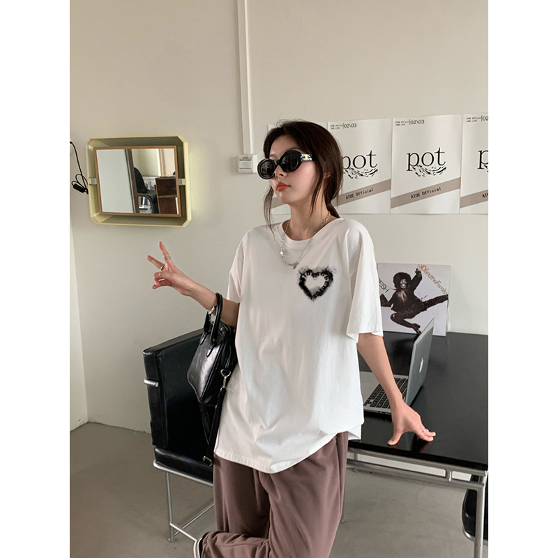 Detail Kaos Couple Graffiti Oversize Kekinian Lengan Pendek Korean Style Heart Printed T-shirt Baju Wanita Hitam
