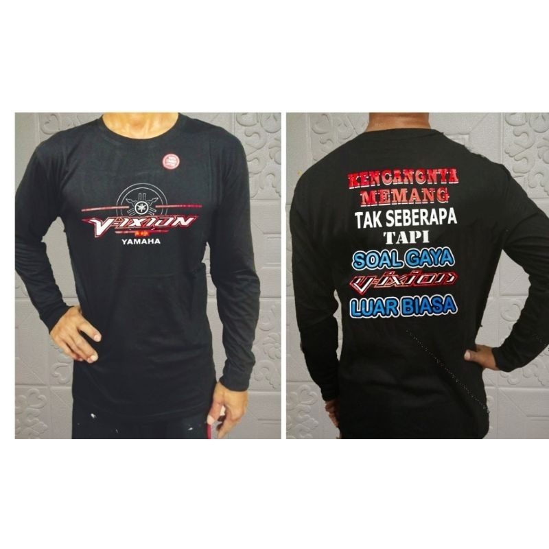 Detail kaos distro pria motif yamaha vixion lengan panjang