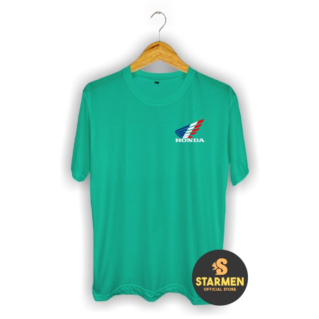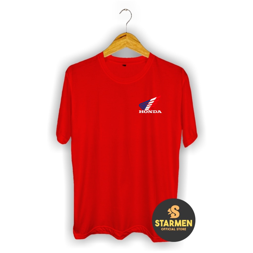 Detail Kaos Distro Pria T-Shirt Motif Kata Kata Logo HONDA BLUERED