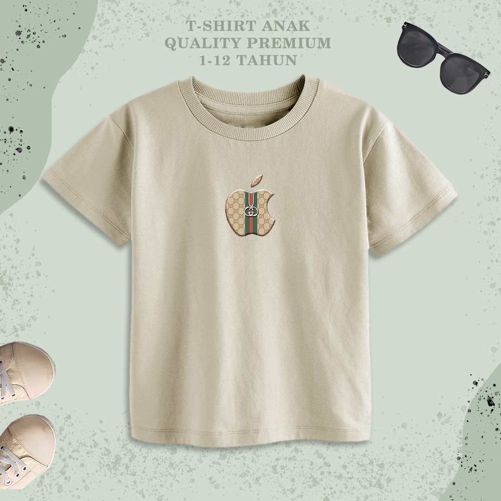 kaos gucci anak kaos apple baju atasan anak 7 tahun atasan anak import Bahan: Cotton Combed 30S - jenis bahan kain katun yg paling favorit. tebal, lembut, nyaman, adem dan menyerap keringat