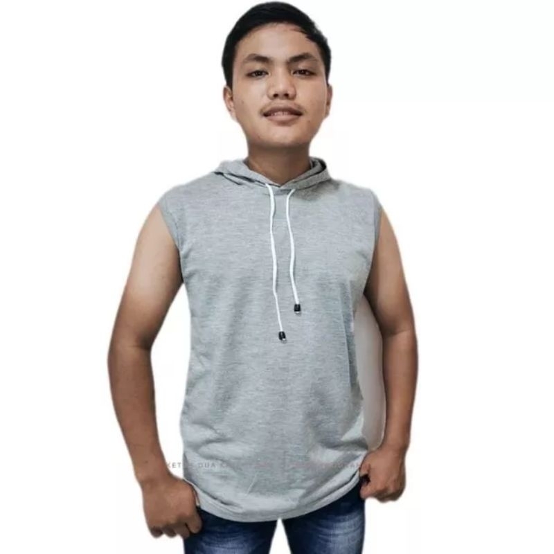 Detail kaos Hoodie polos tanpa lengan / kaos Hoodie buntung