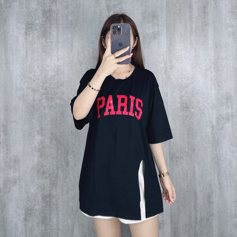 Pakaian Wanita > Atasan > Kaus > KAOS JUMBO XXL PARIS | KAOS OVERSIZE SLIT SAMPING