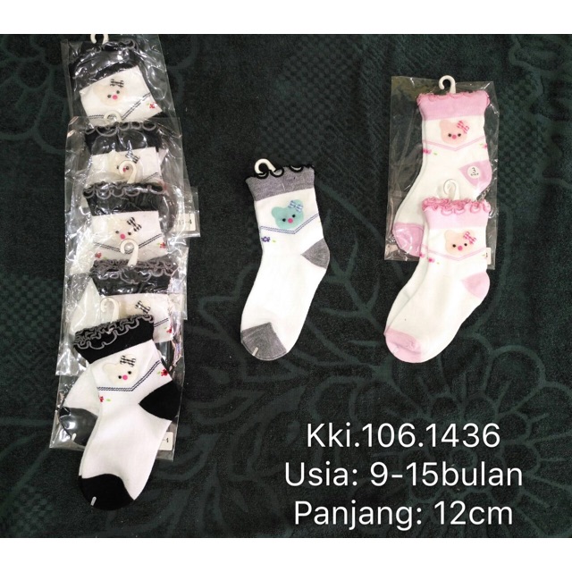 Deskripsi: Bahan : Katun Bayi Umur : 9-15 Bln Tersedia warna: hitam, pink, abu2 (seperti foto) Panjang telapak: 12cm Harga diatas adalah harga per pasang