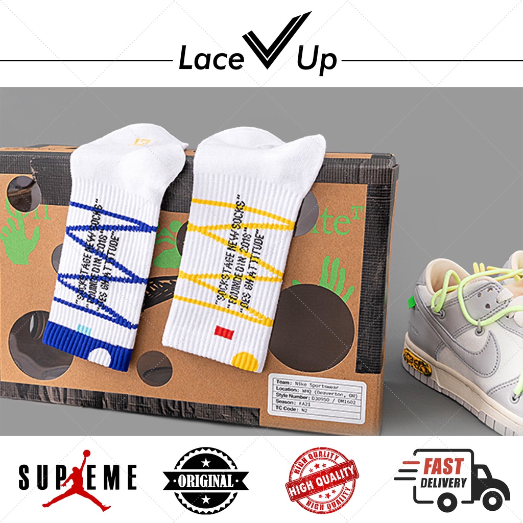 Lace Up Socks - Kaos kaki ini terinspirasi oleh Nike Dunk Low Off White Lot 50s, dengan detail yang matching dengan pattern dan colorways sneakers tersebut.