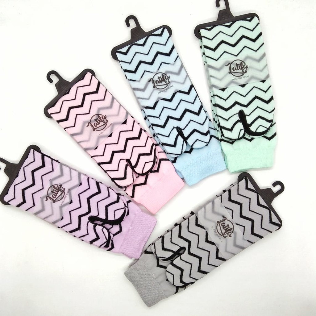 Detail Kaos Kaki Jempol Muslimah Nilon Motif Zig Zag Untuk Dewasa