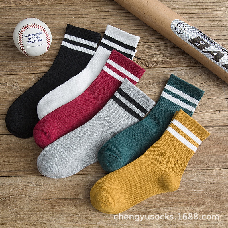 Olahraga & Outdoor > Sepak Bola, Futsal, & Sepak Takraw > Kaos Kaki Bola > Kaos Kaki Korea Style Casual Sport Motif Garis Bahan Katun Warna Polos Medium Sock U16 KS07 V3