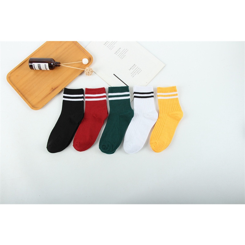 Kaos Kaki Korea Style Casual Sport Motif Garis Bahan Katun Warna Polos Medium Sock U16 KS07 V3