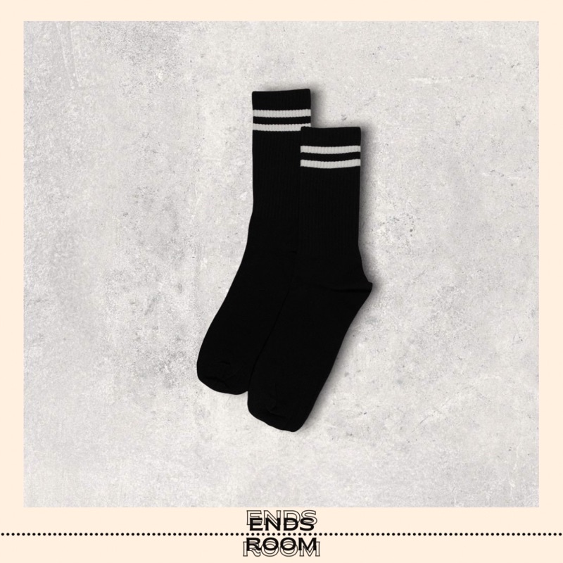 KAOS KAKI PANJANG MOTIF 2 GARIS HITAM PREMIUM