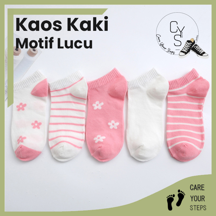 Kaos Kaki Wanita Imut Motif Bunga Strip Kaos Kaki Pendek Semata Kaki Cewek Korea Fashion Style KK31 CYS