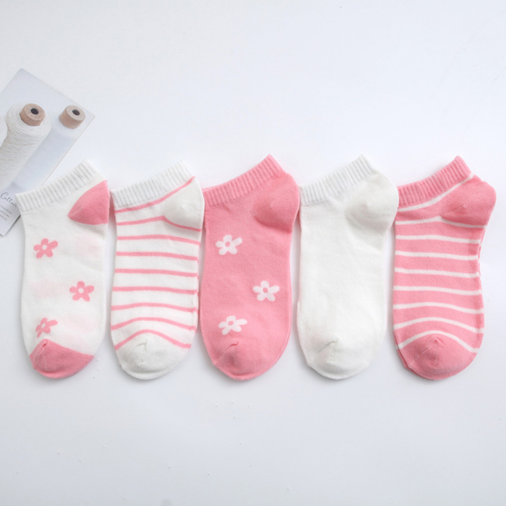 Sepatu Wanita > Kaus Kaki & Stocking > Kaus Kaki > Kaos Kaki Wanita Imut Motif Bunga Strip Kaos Kaki Pendek Semata Kaki Cewek Korea Fashion Style KK31 CYS