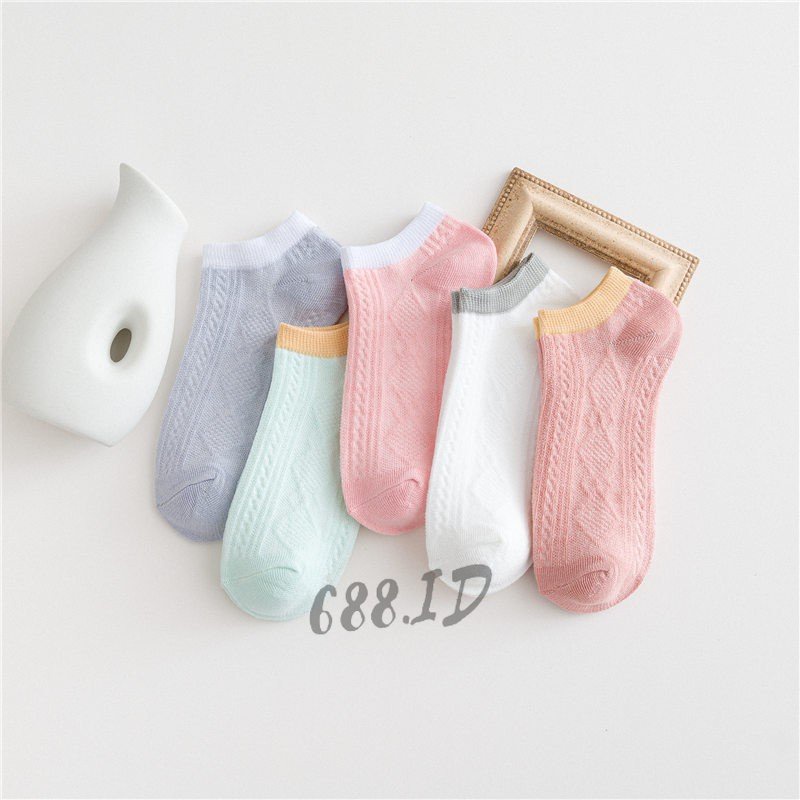 Olahraga & Outdoor > Sepatu Olahraga > Sepatu Olahraga Lainnya > Kaos Kaki Wanita Korea Style Kaus Kaki Pendek Semata Kaki Bahan Katun Short Ankle Sock Fashion Casual Sport Motif Garis KSK 04