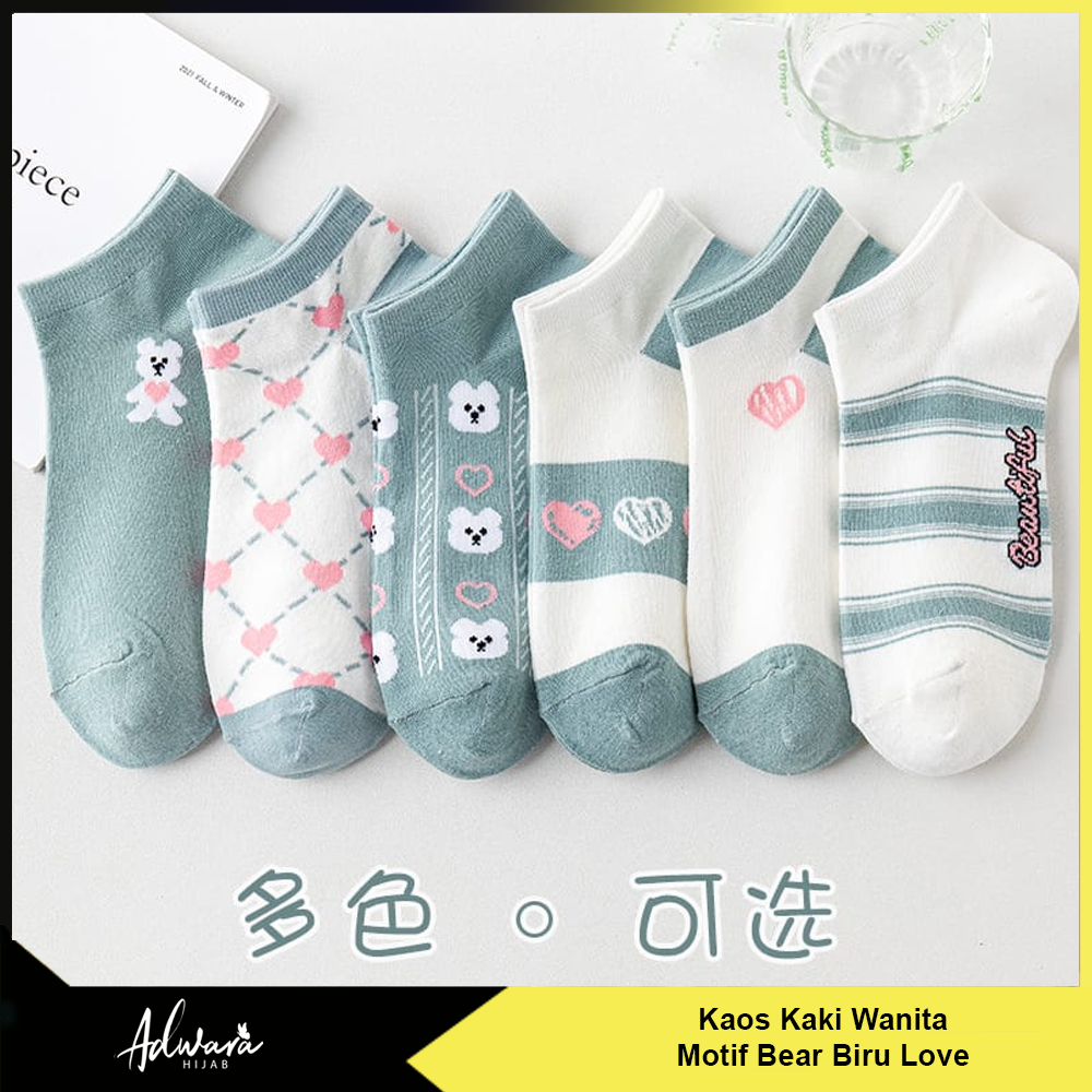 Detail Kaos kaki Wanita Pendek Semata Kaki Motif Bear Biru Love Kekinian