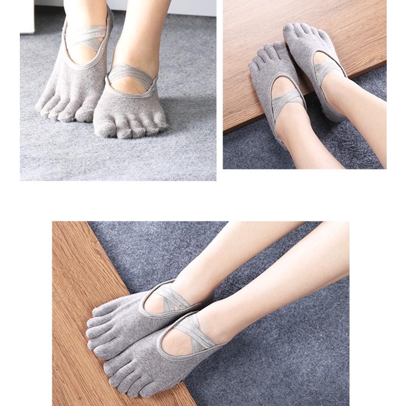 Sepatu Wanita > Kaus Kaki & Stocking > Kaus Kaki > Kaos Kaki Yoga 5 Jari Tertutup Dengan Tali Kaos Kaki Pilates Anti Slip Yoga Socks With Grips Non Slip Women Gym Socks Balet Dance with dot