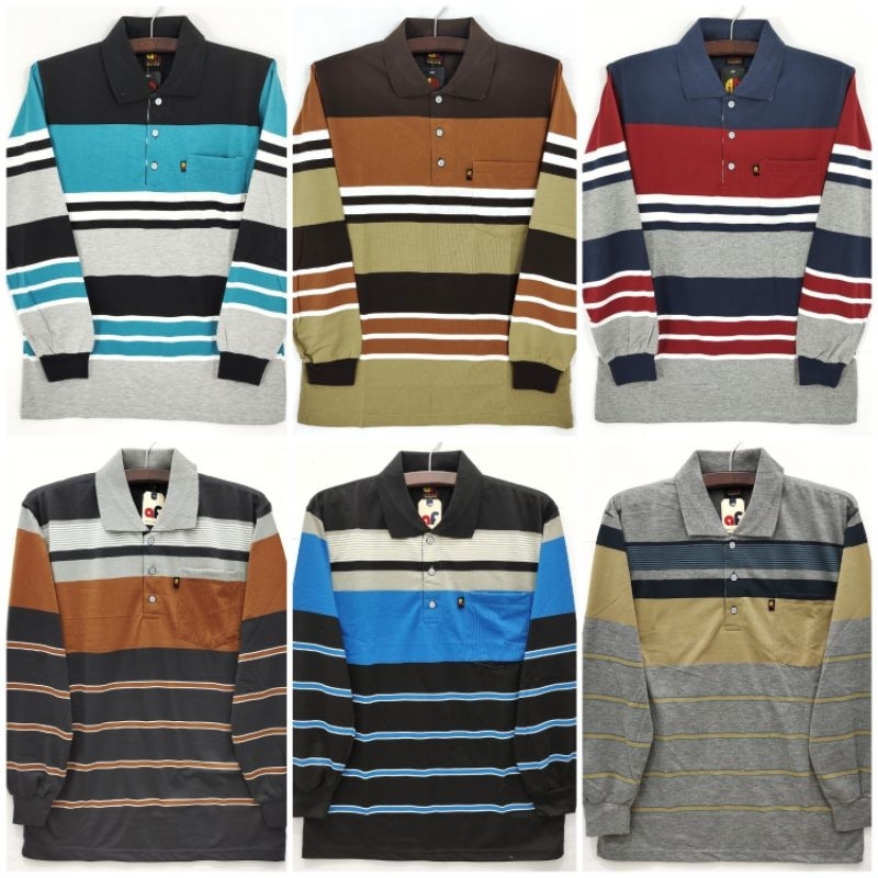 Detail Kaos Kerah Salur Saku Pria Dewasa Lengan Panjang afada allsize XL