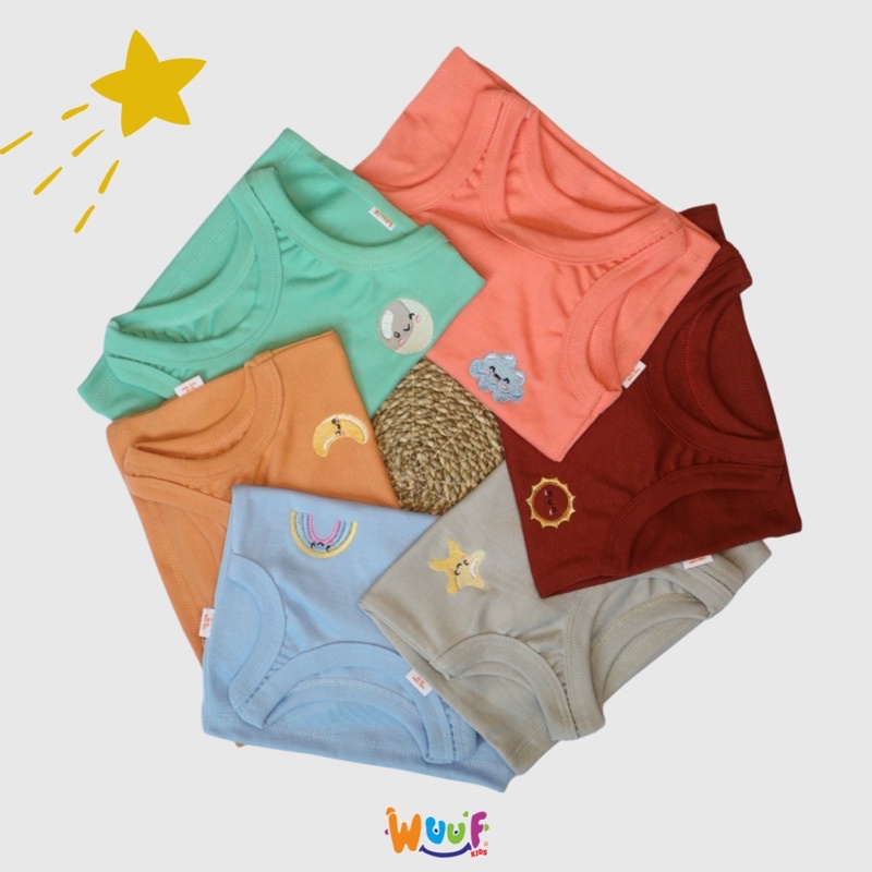 Bahan kain rib 100% cotton nyaman dipakai untuk bayi/anak Motif menggunakan bordir, jadi tidak mungkin luntur ya dan TIDAK PASARAN tersedia 6 varian warna dan motif bordir : Blue Rainbow, Peach Cloud, Tosca Full Moon, Light Brown Moon, Terracotta Sun, Grey Star