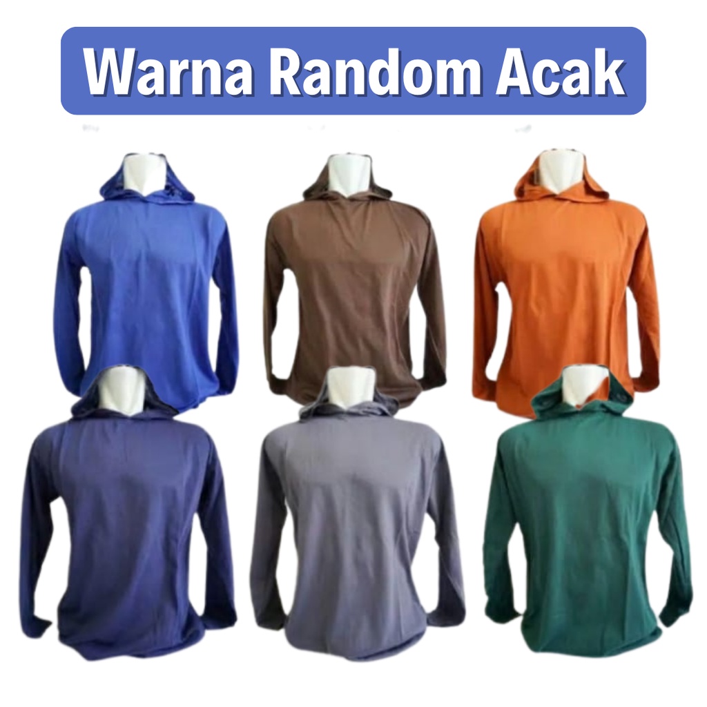 Kaos Pria Lengan Panjang Hodie Bertudung Topi Kupluk Bahan Poli Katun Adem Nyaman Menyerap Keringat Tersedia Size L dan XL 1 Kg Muat Untuk 5 Kaos Cocok Untuk Kerja Lapangan, Tani, Seragam Karyawan dan Lain Lainya. Jahitan Rapi Buatan Garment