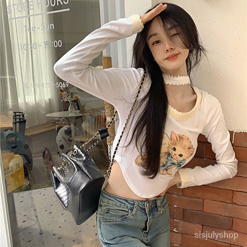 Detail Kaos lengan panjang wanita musim gugur baru musim gugur atasan kemeja bawah tipis leher bulat
