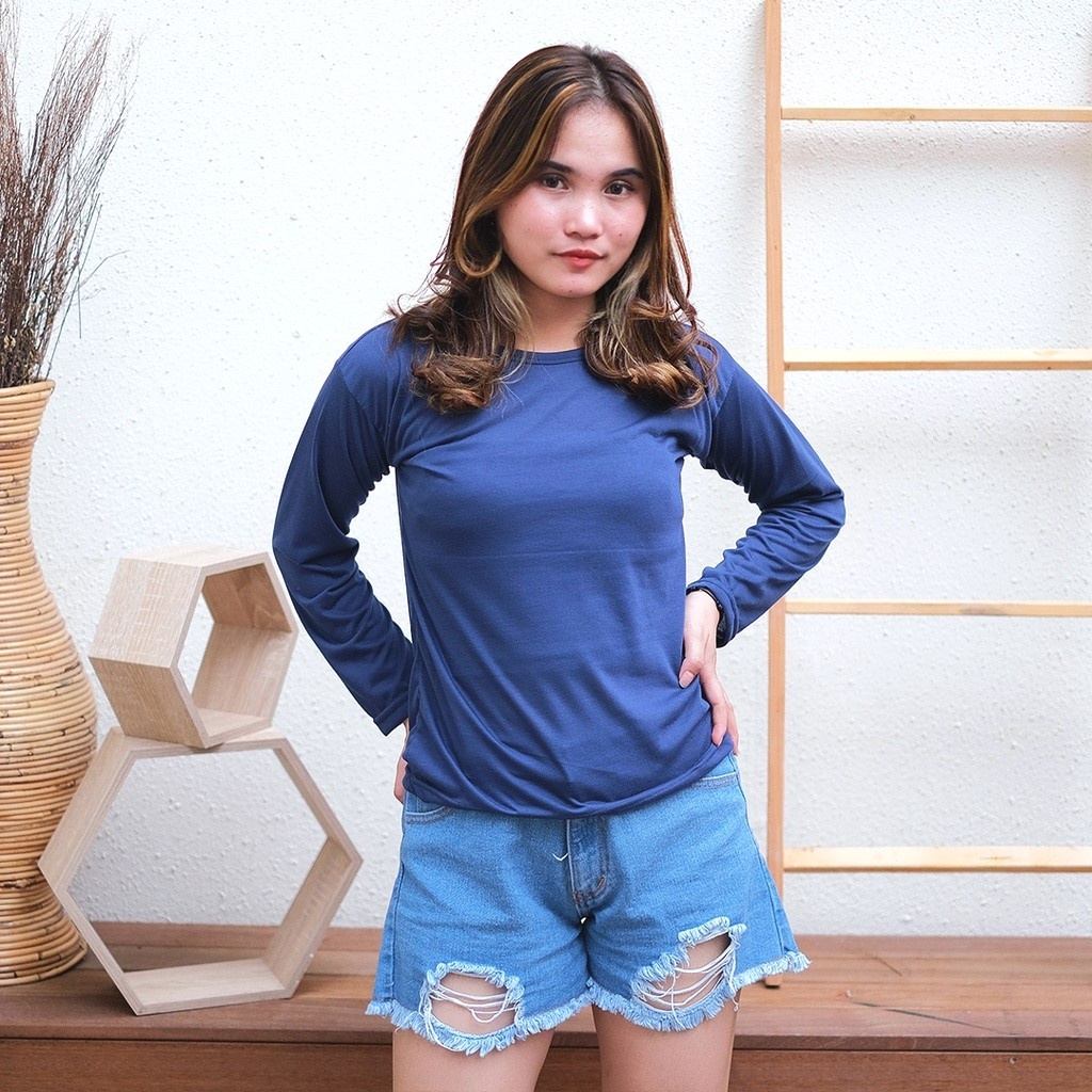 Kaos Inner Manset Oblong Polos Wanita Lengan Panjang Tipis Daleman Adem Sr354