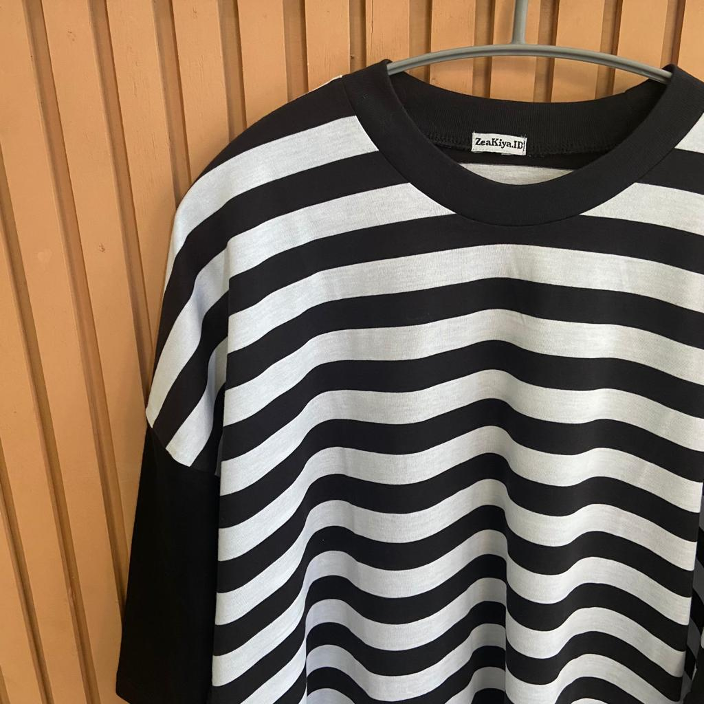 Detail Kaos Oversize Dewasa couple ibu menyusui bikaan samping motif stripe bahan cotton combed