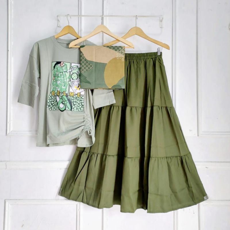 Pakaian Wanita > Set > Set Wanita > Kaos Oversize Serut Set Rok Rempel Lipit // One Set Viral
