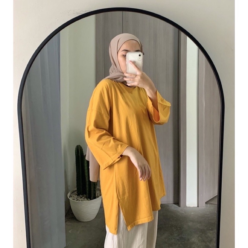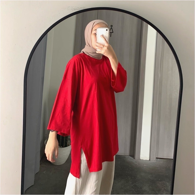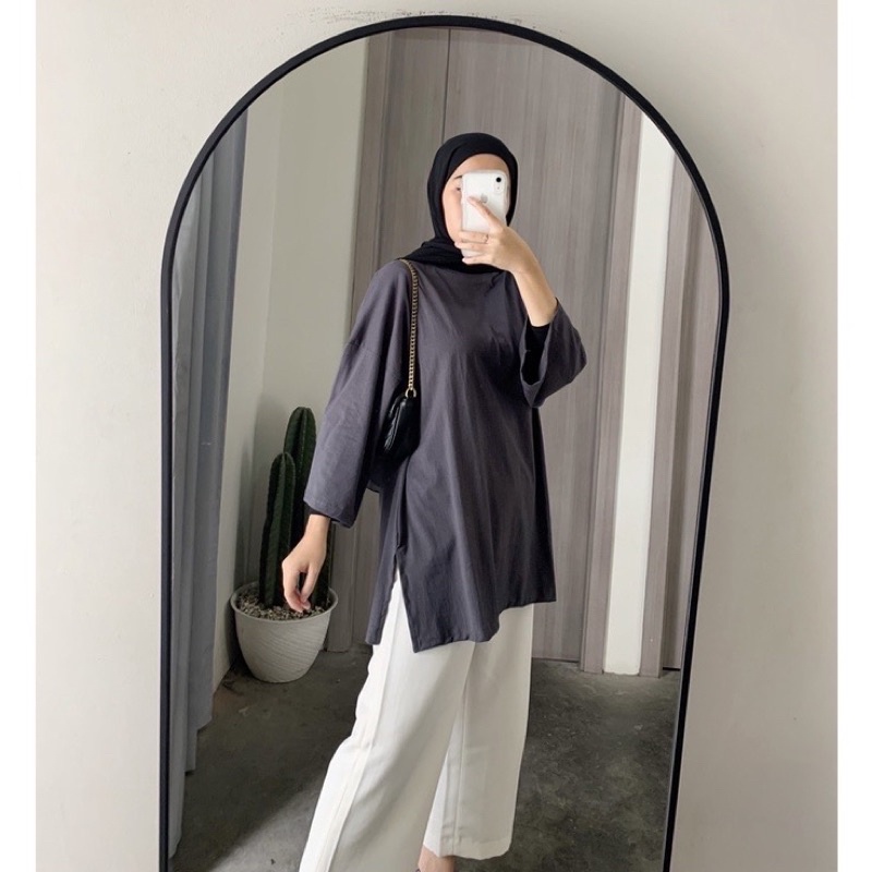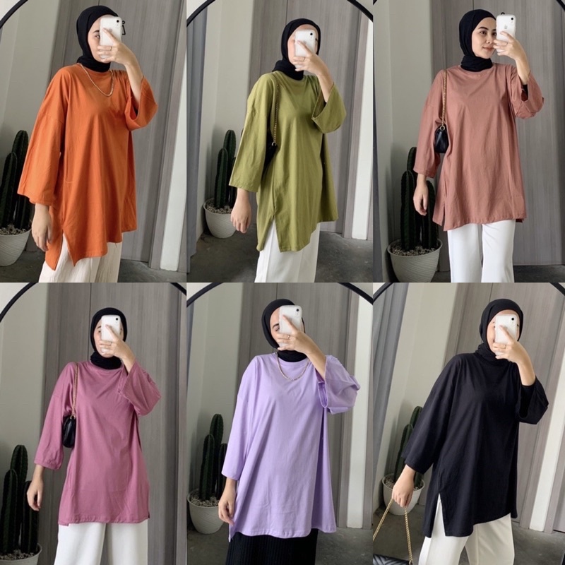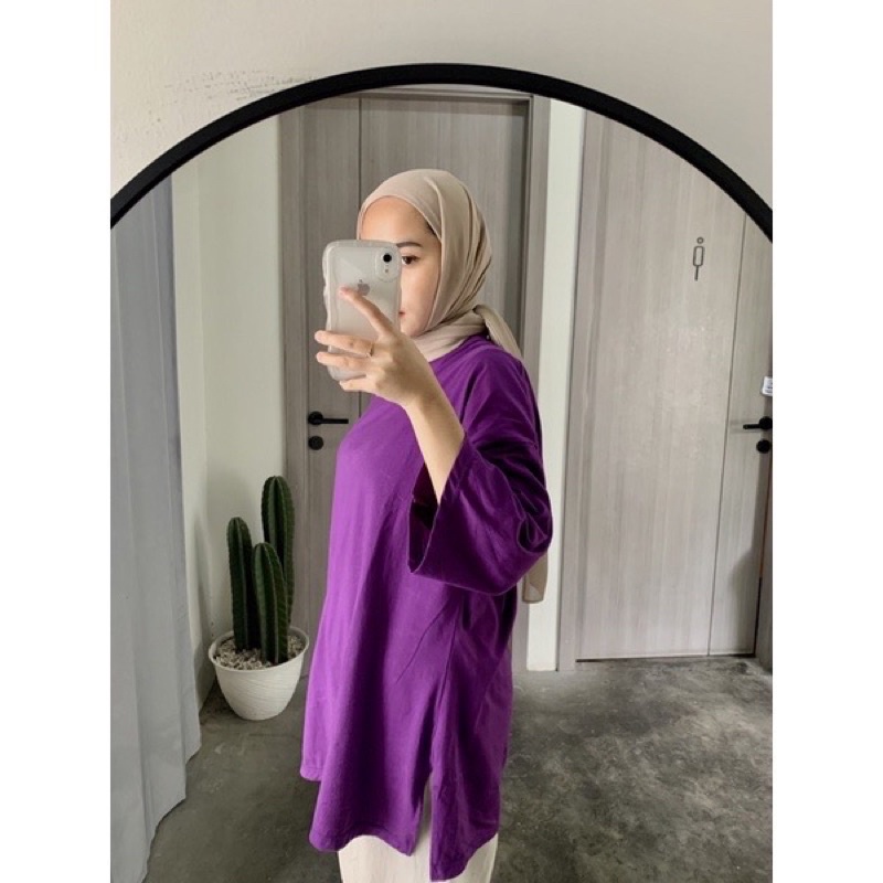 Fashion Muslim > Dress Muslim > Dress Muslim Lainnya > KAOS OVERSIZE SLIT DAILY TOP JUMBO XXL BASIC POLOS LENGAN 7/8 COTTON COMBED