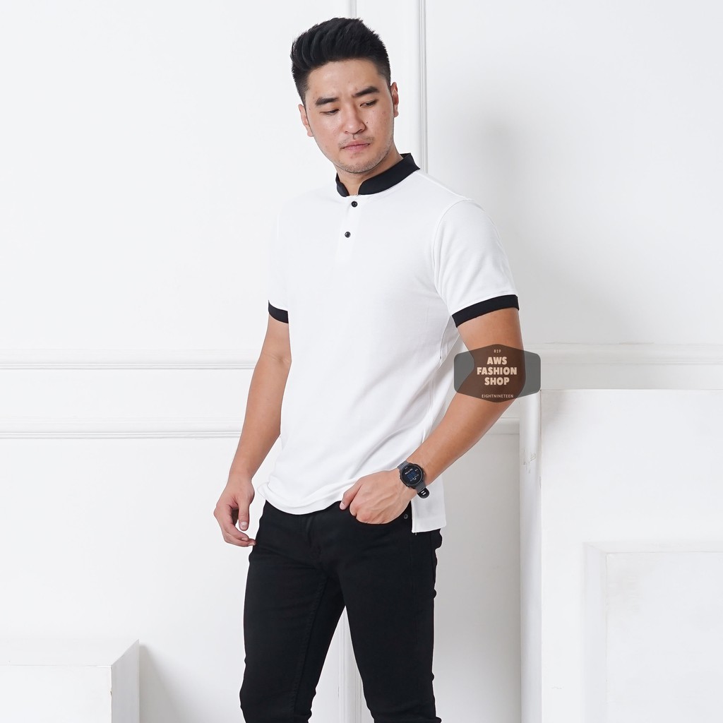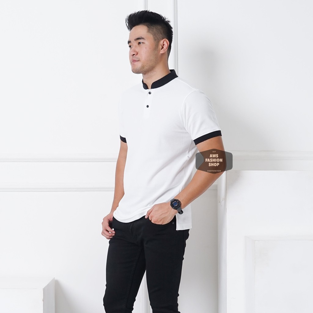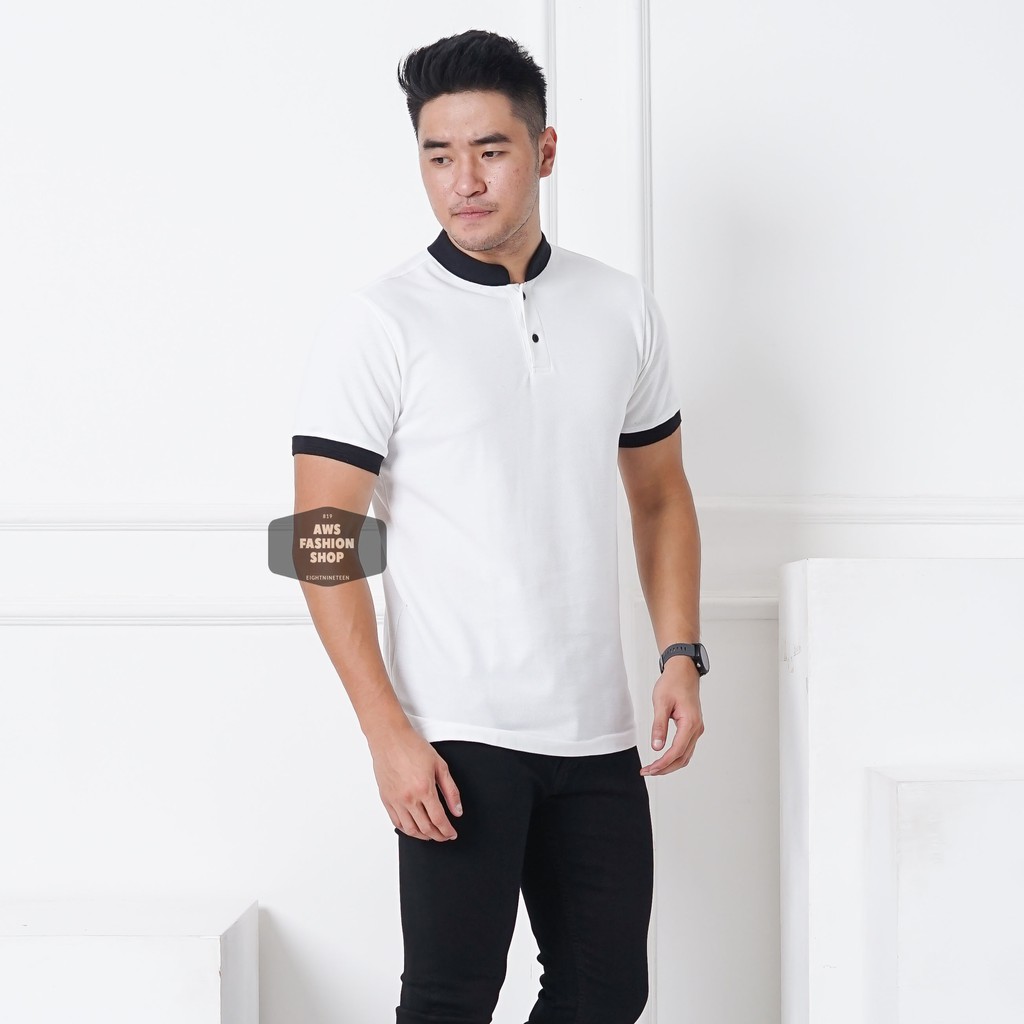 Detail Kaos Polo Pria Polo Shirt Kerah Shanghai Lengan Pendek Polos Putih BIG SIZE JUMBO XXL / 3XL