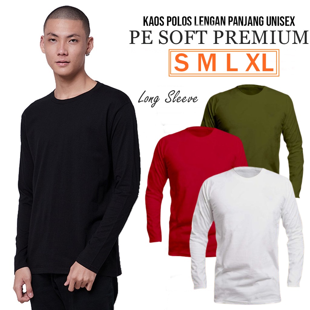 Pakaian Pria > Atasan > Kaos > KAOS POLOS HITAM TANGAN PANJANG - LONG SLEEVE OBLONG ATASAN PRIA wanita TERMURAH kaos oblong tangan panjang pria wanita kaos murah