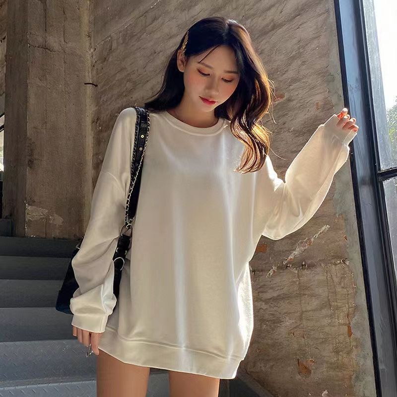 Detail Kaos Polos Oversize Crewneck Kaos Wanita Jumbo Lengan Panjang