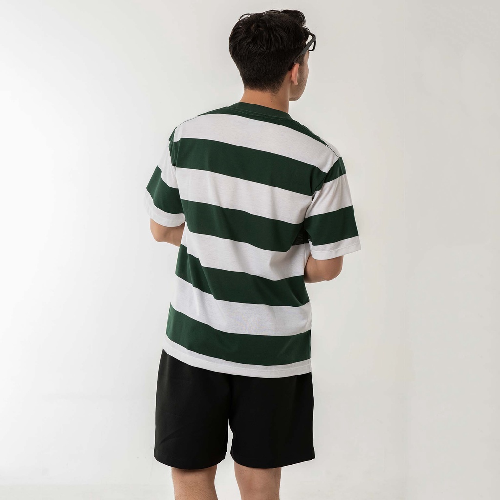 Detail Kaos Polos Pria Garis WOODCUTTER White Green - Putih Hijau Oversize SS T-shirt Lengan Pendek