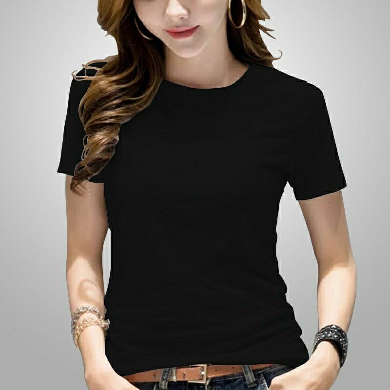 Detail KAOS POLOS WANITA KERAH STANDAR BULAT HITAM PUTIH