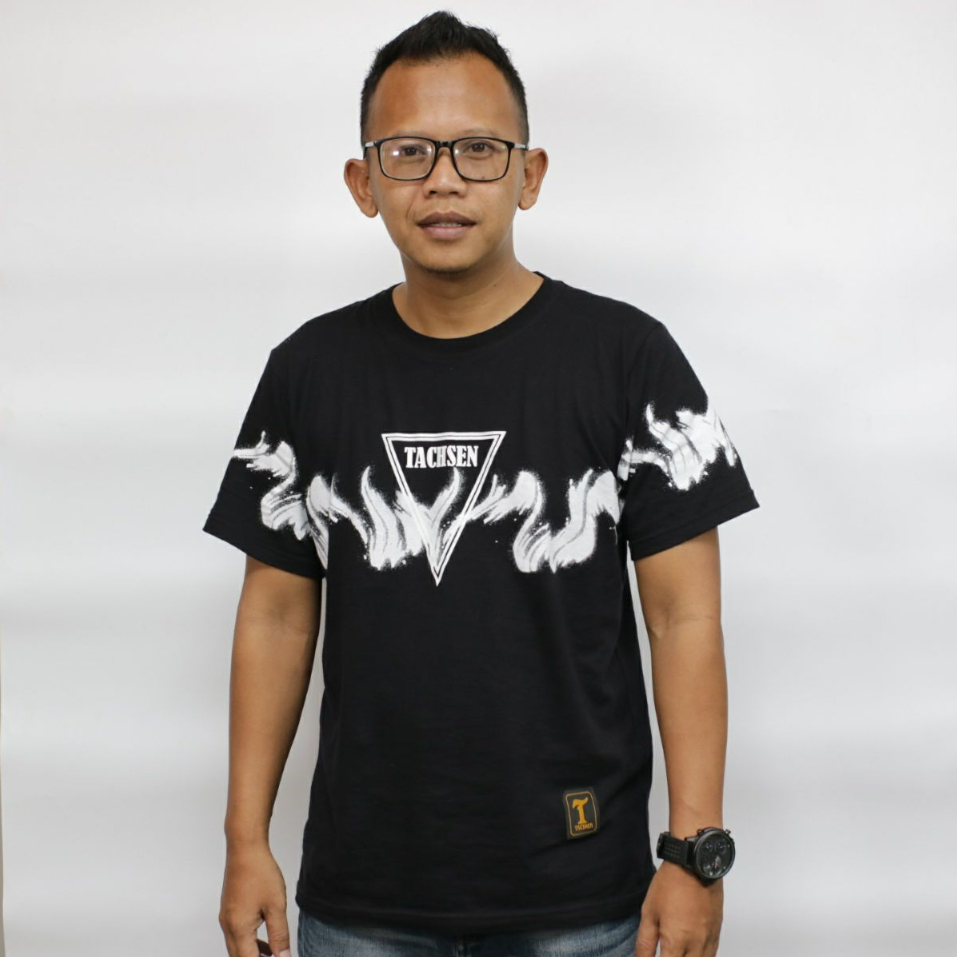 Pakaian Pria > Atasan > Kaos > Kaos Pria Distro Lengan Pendek Tacshen Motif Segitiga Bahan Catton Combad 30s Sablon Plastisol