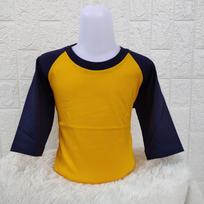 Detail kaos reglan polos KUNING-NAVY lengan 3/4 uk 20 22 S M L XL XXL anak dan dewasa