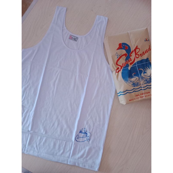 **SPESIFIKASI; - bahan Campuran katun Tidak Tebal (Standart Kaos Dalam) - Tersedia warna putih dengan model polos - Terdapat stamp/logo Swan Brand berwarna biru di bagian pojok kanan bawah (silahkan lihat pada foto yang terlampir), - Adem, nyaman dipakai Sehari-hari- -Grade ke -2