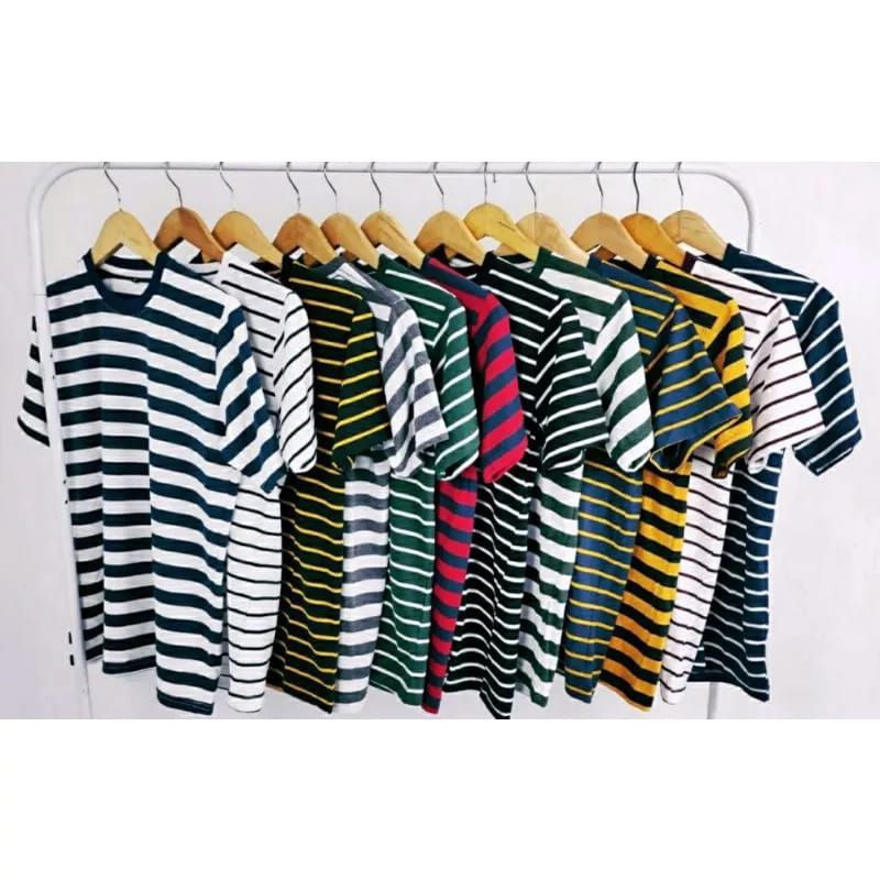 kaos stripe lengan pendek kaos salur pria wanita bahan katun