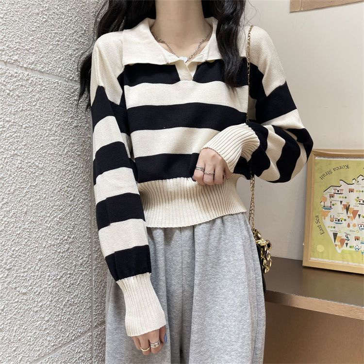 Video perkenalan produk Kaos Stripe Rajut Wanita Lengan Panjang Korean Style Shirt Collar Baju Garis Garis Wanita. Sumber: Shopee.