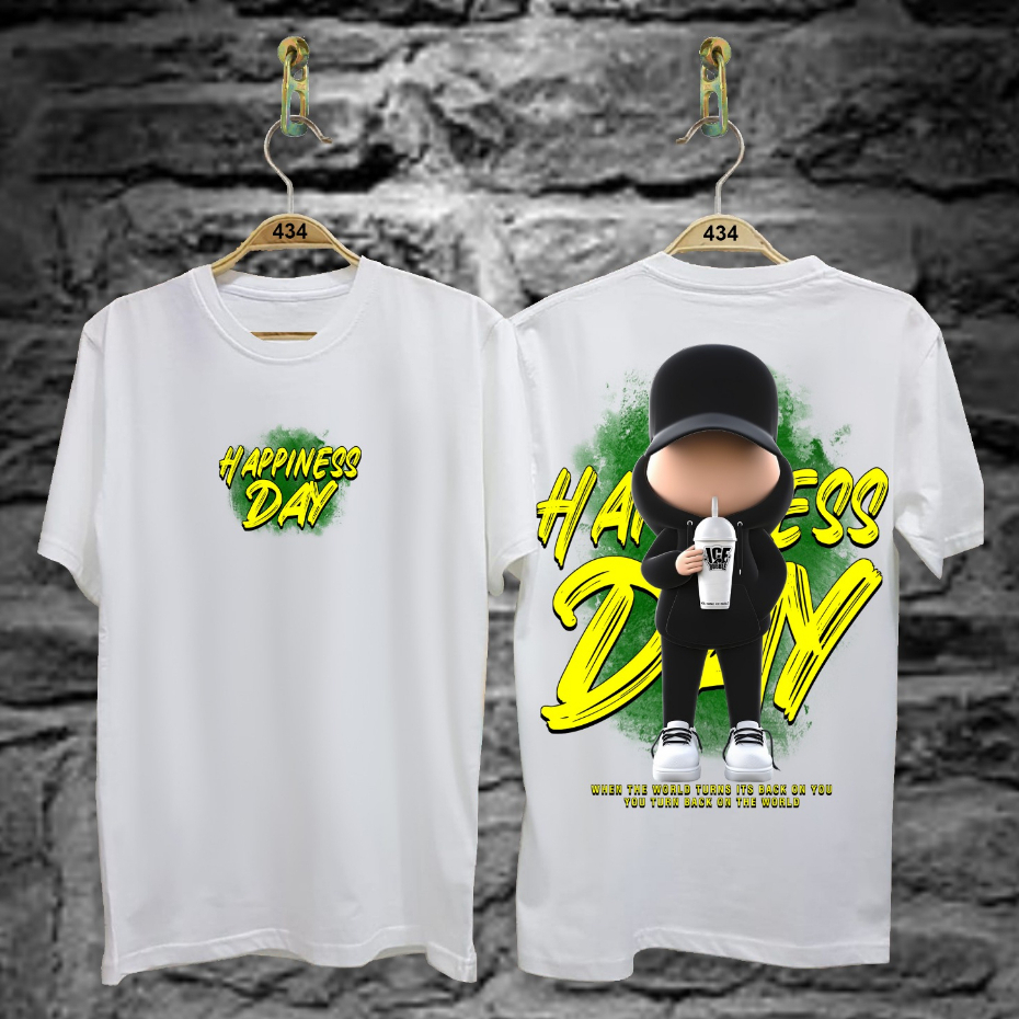 Detail Kaos Tshirt Pria Terbaru Samurai Jepang Happiness Day Warna Putih Distro Lengan Pendek Motif Sablon Bergambar Keren