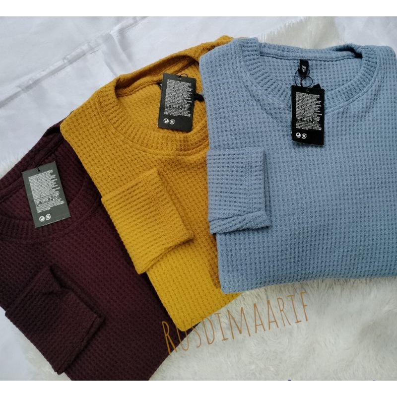 Detail Kaos waffle lengan panjang tebal/Kaos polos wanita/Pria