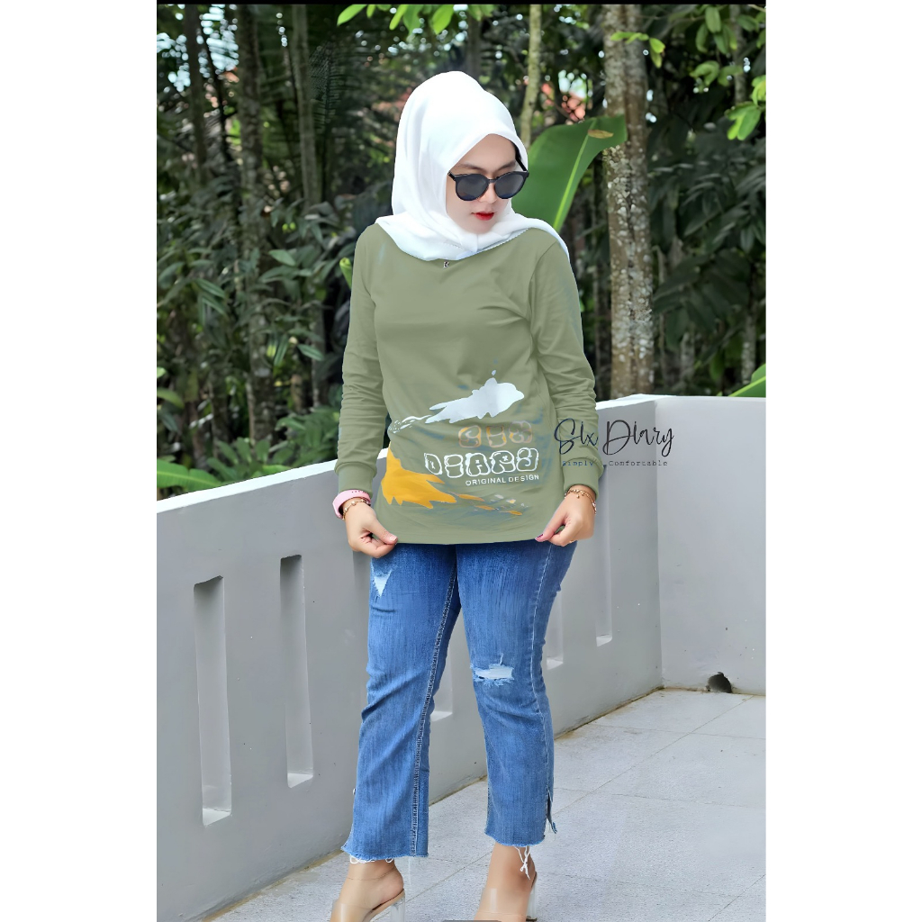 Pakaian Wanita > Atasan > Kemeja & Blouse > Kaos Wanita Atasan Wanita Kaos Lengan Panjang Wanita Six Diary WARNA SKY BLUE Motif ABSTRAK// SIX DIARY/ATASAN WANITA/PAKAIAN WANITA TERBARU 2022