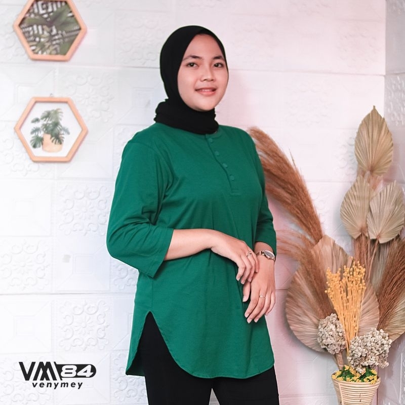 Model Berbahan kaos full cotton combed 24s..yang sangat nyaman saat di pakai kaum wanita.. model kaos berkancing..lengan 3/8..bagian bawah lengkung #COCOK UNTUK DIPAKAI SEMUA ACARA# Bagian depan memakai kancing 4 dan bukan hanya sekedar hiasan. Bisa juga di gunakan untuk ibu yang menyusui.