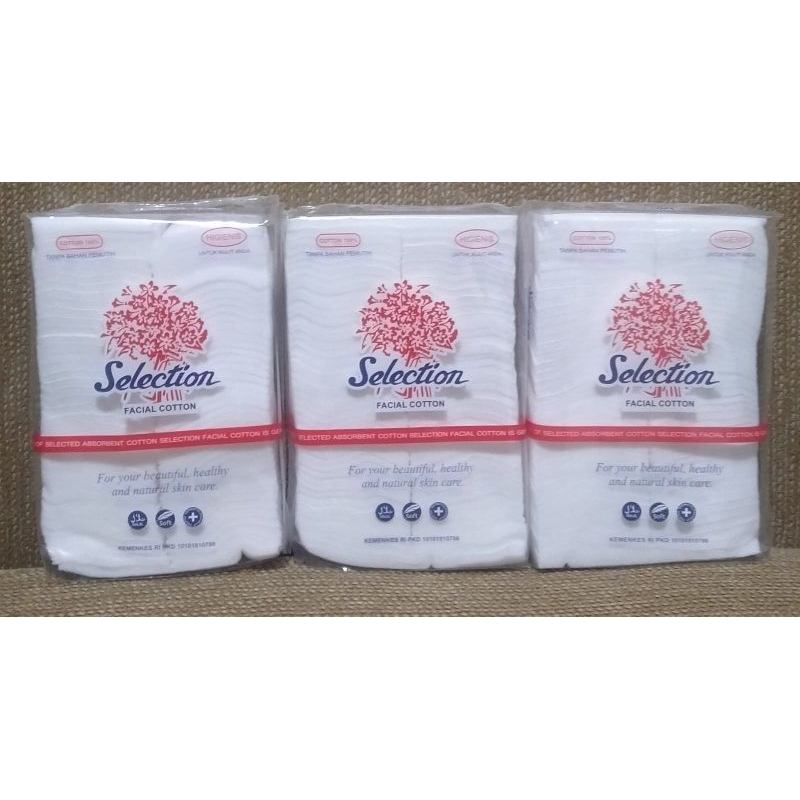 Selection Facial Cotton halus dan lembut untuk perawatan kulit anda, tidak mengandung merkuri dan klorin sehingga sangat aman digunakan sehari-hari Memiliki tekstur unik yang dapat menghilangkan sisa kosmetik yang menempel di wajah dan tidak meninggalkan serat kapas di wajah anda Aman untuk perawatan bayi dan untuk membersihkan luka.