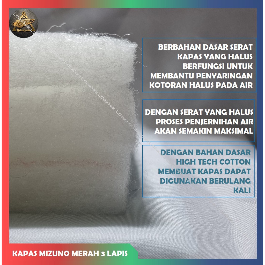 KEUNGGULAN KAPAS MIZUNO ADALAH : BERKUALITAS TINGGI DAN BAIK MENYARING SELURUH PARTIKEL PADAT YANG TERLARUT DI AIR SEPERTI SISA MAKANAN IKAN, KOTORAN IKAN, PASIR, BEBATUAN, LUMUT, ASH, DAN WASTE LAINNYA TAHAN LAMA DAN AWET DENGAN PERFORMA YANG TINGGI GRAMASI KAPAS TINGGI (SEHINGGA KAPAS LEBIH BERAT)