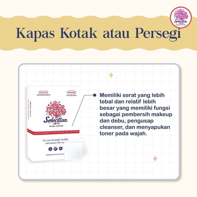 KAPAS SELECTION FACIAL COTTON 35 GRAM merupakan kapas sekali pakai.