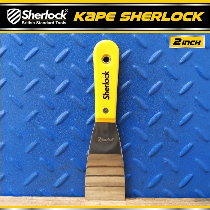 Kape 2 inch Sherlock Putty Knife Scraper Terbuat dari baja lentur dengan surface chrome yang baik Ukuran Lebar Mata baja: 2 inch (+/- 5 cm) Material: Baja Steel Cocok untuk pekerjaan mengerok bekas cat lama dan menambal retakan atau lubang di dinding dan lantai