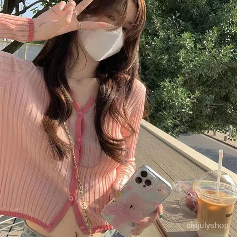 Detail Kardigan rajutan lengan panjang pakaian luar tipis pakaian dalam tipis pakaian dalam atasan pendek