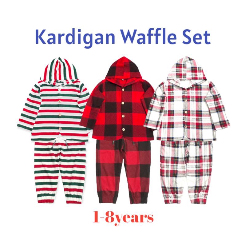 Detail KARDIGAN SET waffle jogger piyama anak setelan panjang anak
