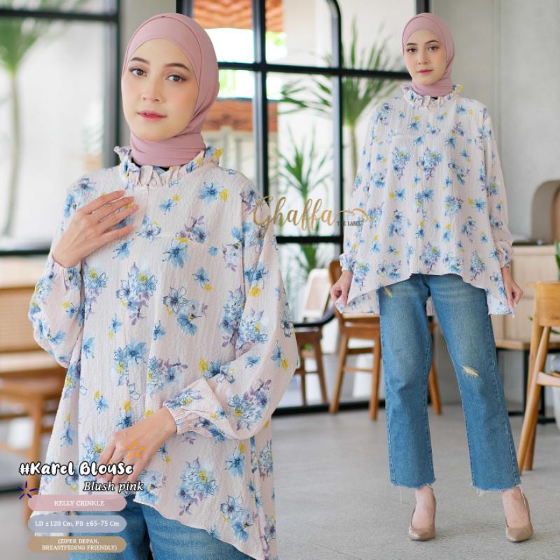 Fashion Muslim > Atasan Muslim Wanita > Kemeja, Blouse, & Dalaman Blouse > KAREL BLOUSE BY GHAFFA THE LABEL / BLOUSE MOTIF KELLY CRINKLE / Atasan wanita muslimah LD 120