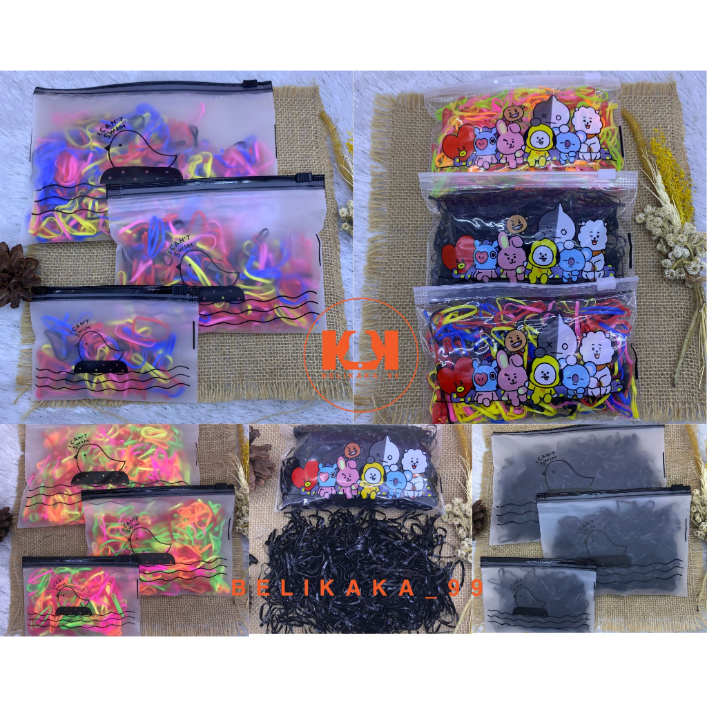 Detail KARET JEPANG 50 30 10 GRAM WARNA WARNI (5 WARNA) / KARET RAMBUT ANAK IKAT RAMBUT