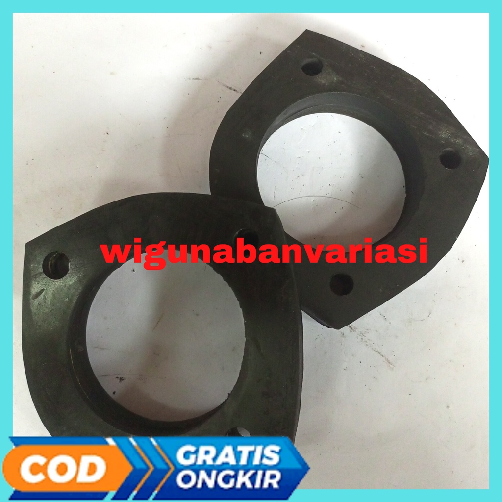 Terbuat dari Karet Konveyor benang yg awet dan kuat. Berfungsi membantu meredam getaran suspensi ke body dan menambah ground clearance area sehingga dapat mengaplikasikan roda atau velg yang lebih besar. Selain itu bisa membantu meninggikan suspensi mobil Harga tercantum per 2 pcs Tebal 2 cm dan 3 cm