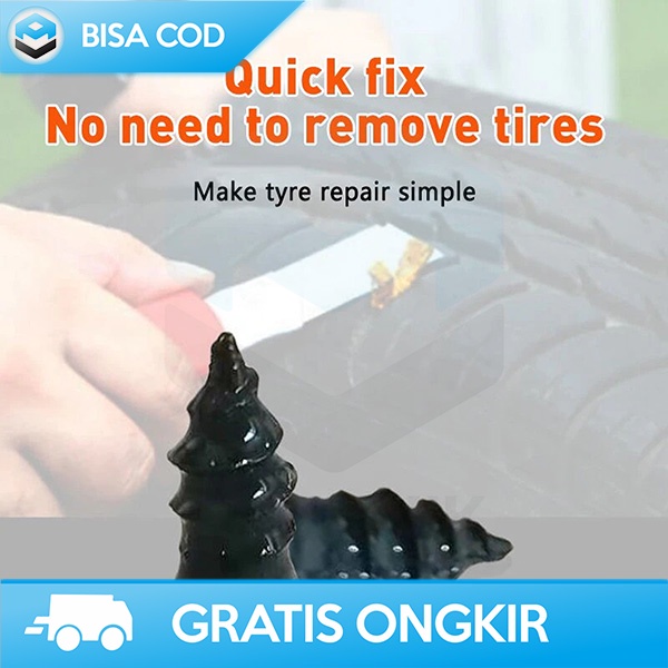 Karet ini berguna untuk menambal ban mobil, sepeda dan motor. Anda dapat dengan mudah menambal ban sendiri dengan memasukkan karet ini ke bagian ban yang bocor. Cara memasukkan karet tambal pun mudah yaitu cukup dengan menggunakan obeng. Karet tambal ban ini cocok digunakan untuk jenis ban tubeless. Dengan ukurannya yang kecil, karet tambal ban ini bisa Anda bawa untuk mengatisipasi masalah ban selama perjalanan.