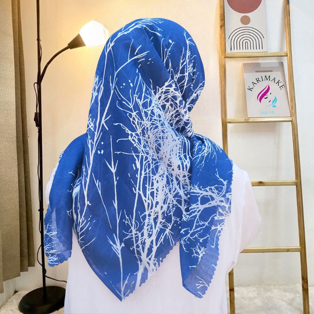 Detail Karimake Hijab / Kerudung Segi Empat Voal Premium Printing Motif Ranting Laser Cut 110 x 110